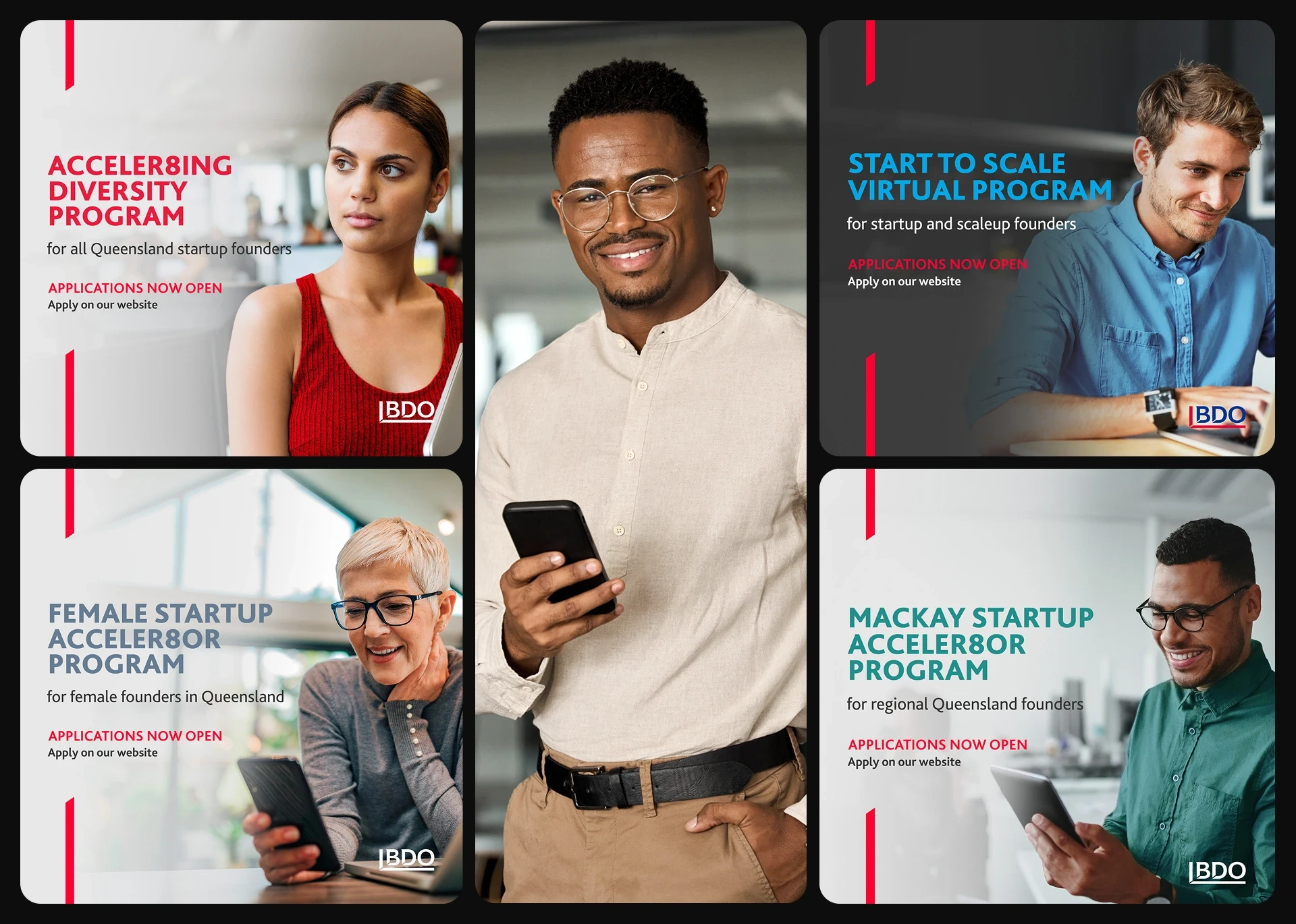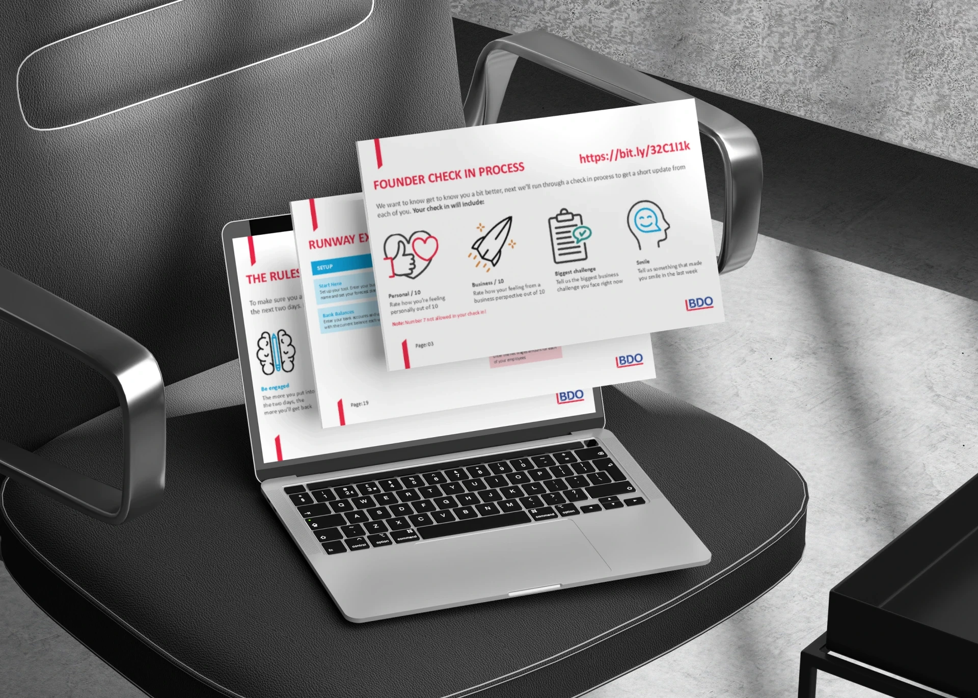 The challenge was to design materials that balanced BDO’s professional standards with clarity and approachability for early-stage founders and business owners.