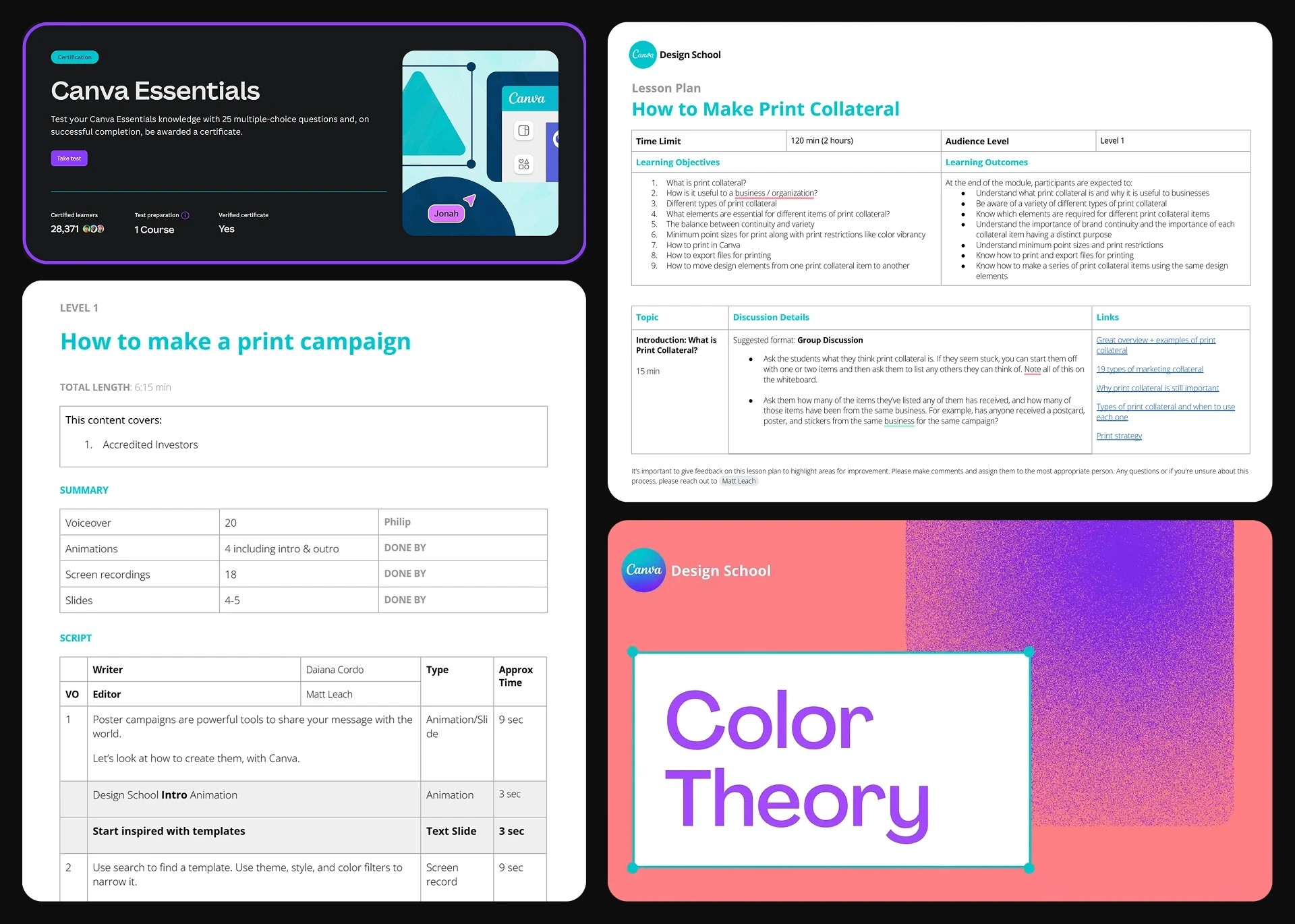 Educational content aligned with Canva’s brand voice and learning standards