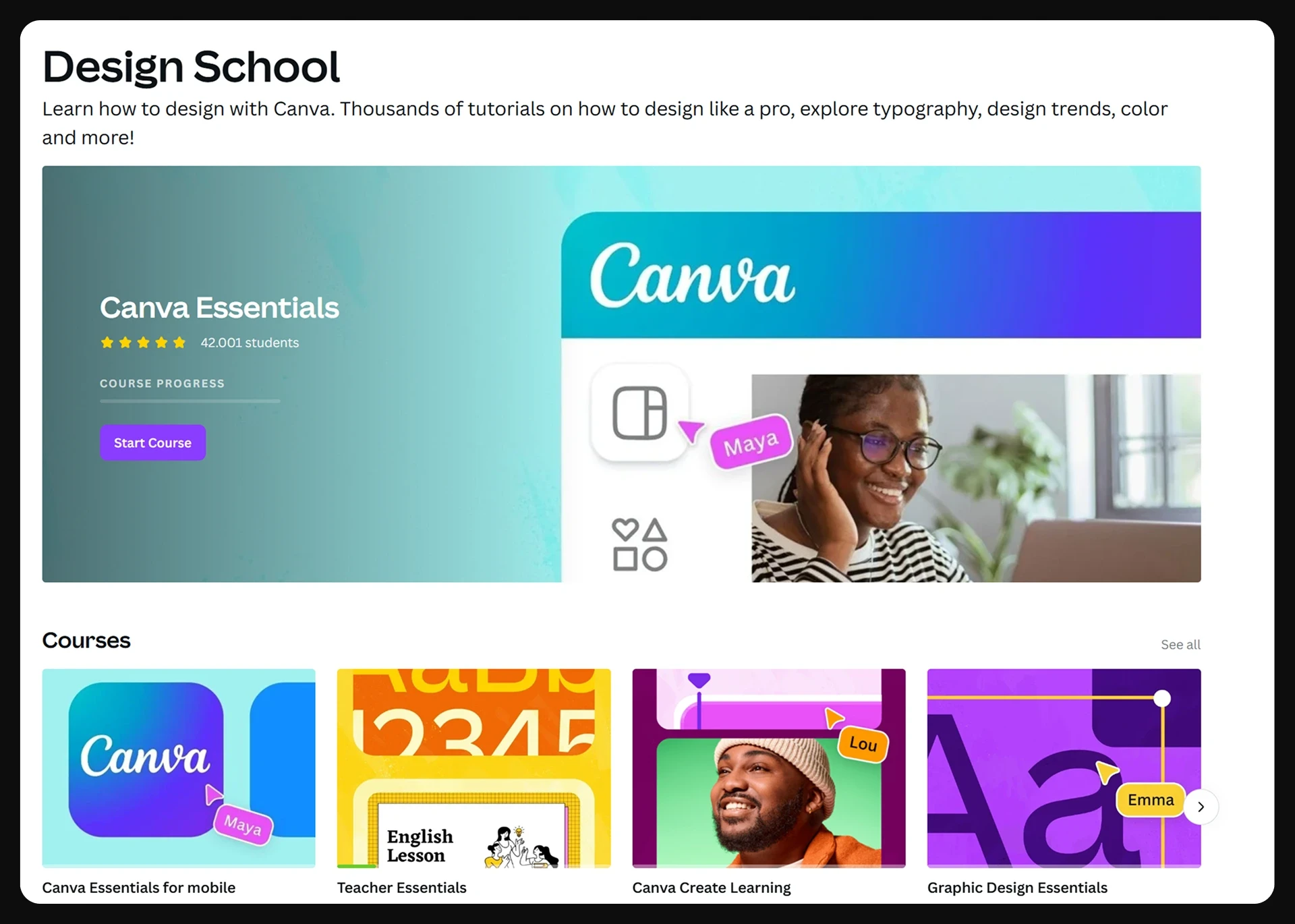 Scalable content to support ongoing additions to Canva Design School