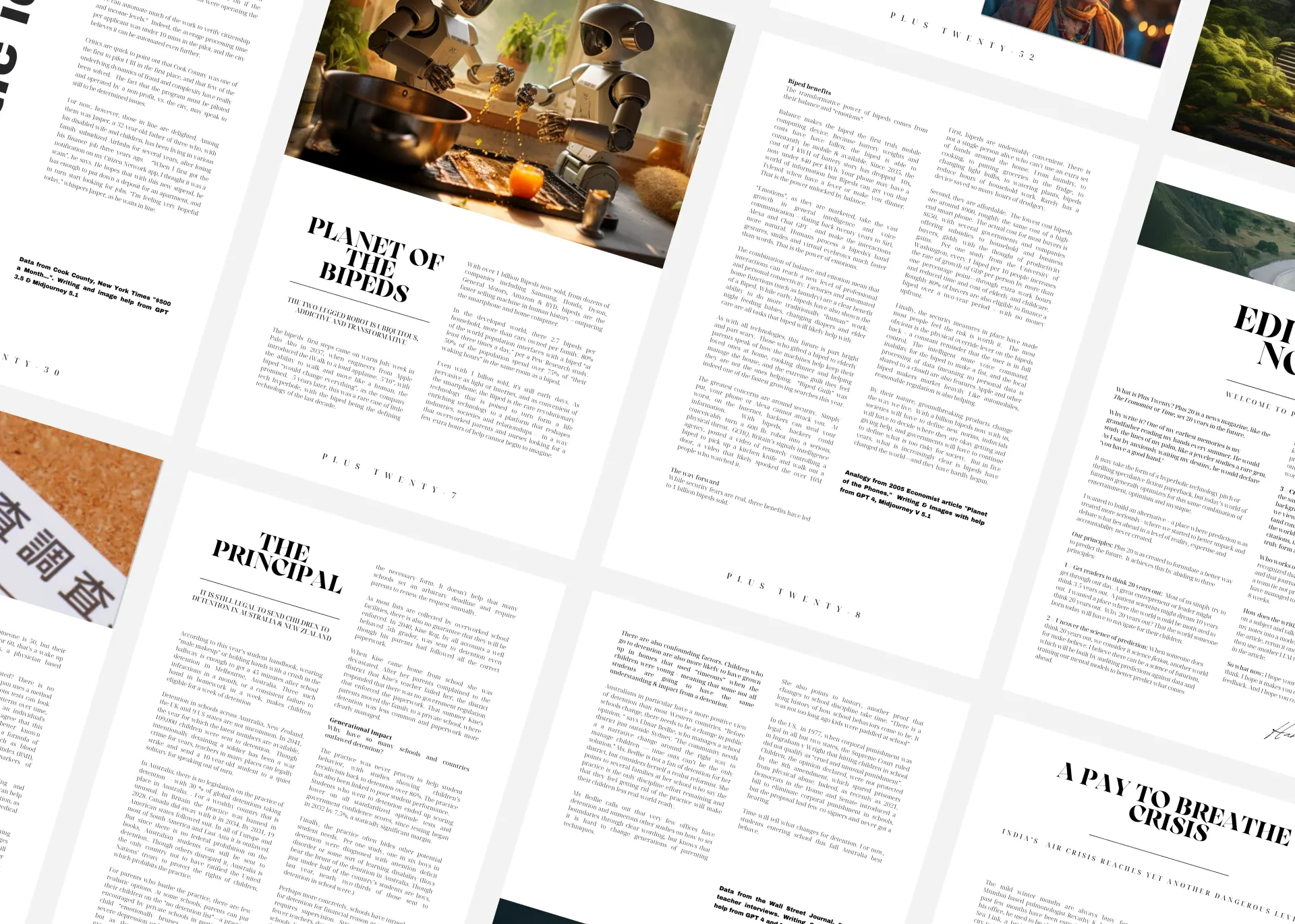 Plus Twenty needed a magazine layout that could support long-form editorial content while feeling contemporary, thoughtful, and visually distinctive. The publication explores culture, technology, and the future of humanity, so the design needed to elevate complex ideas without overwhelming the reader.