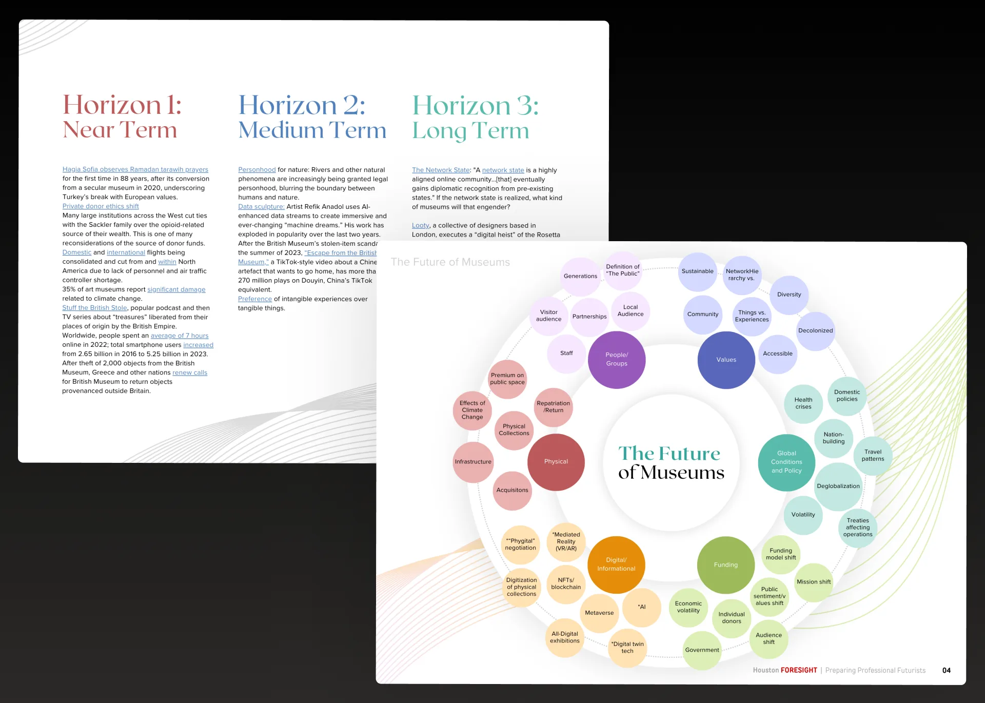 Research-driven exploration of social, cultural, technological, and political drivers shaping museums